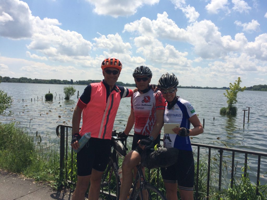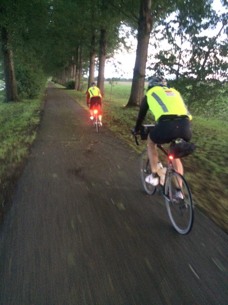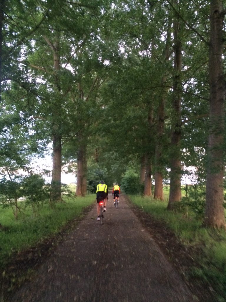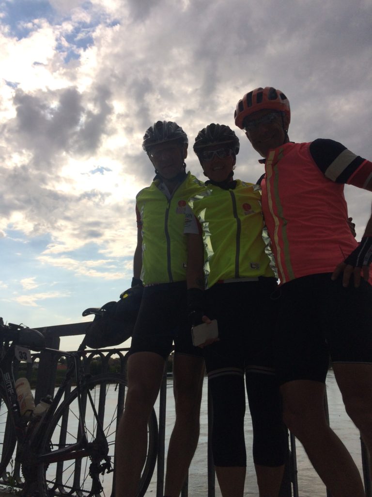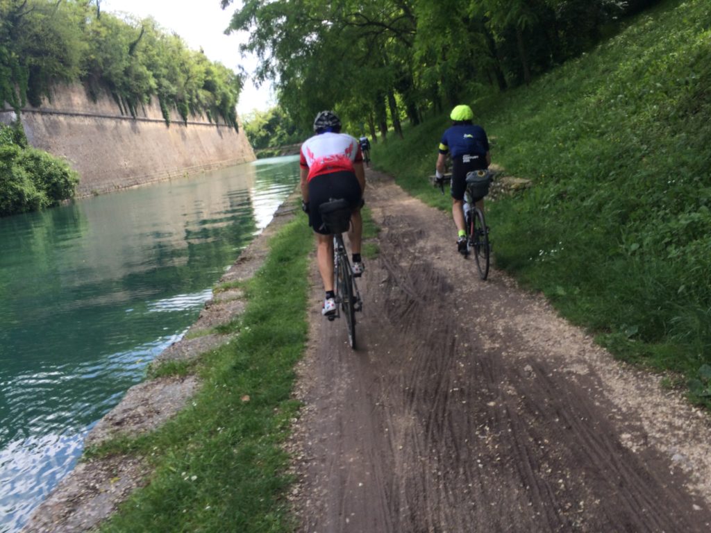 Pausa fisiologica “en plein air” ed in quel momento sfrecciano Hermann, il compagno del giorno prima, e sua moglie Gabi partiti alle 5:30 da Bolzano.Sono una coppia di randonneurs che si riveleranno degli ottimi compagni fino a Ferrara. Pedaliamo bene insieme prima fino al ristoro controllo di Ala Avio e poi fino al punto di passare dalla ciclabile verso Bardolino, un punto che si è rivelato insidioso con rampe corte ma ripide e saliscendi.