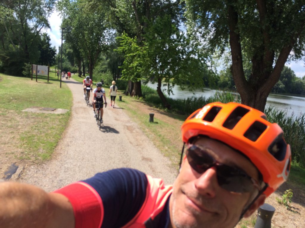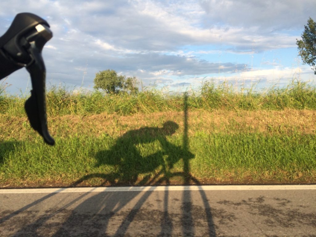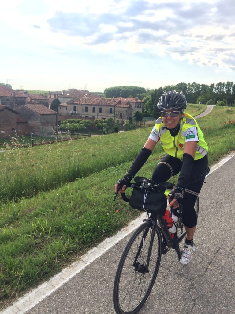 Io esagero col riso e quando riparto faccio fatica, digestione difficile e sete implacabile per 2 ore. A ciò si aggiunge il vento fortissimo contrario che andiamo a prendere per bene tutto sull’argine del PO. Devastante.